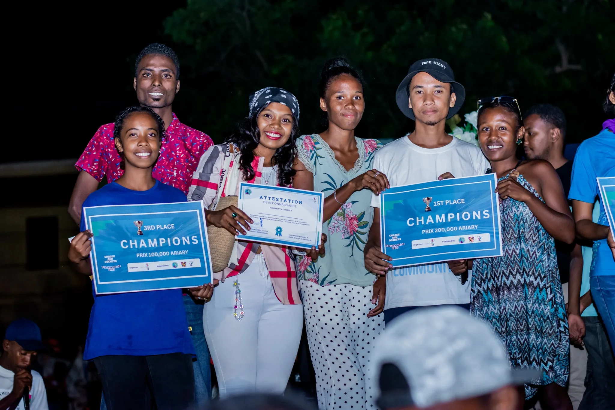 Le premier prix, doté de 200 000 Ar, est revenu à une équipe composée des membres de Youth Community Madagascar (WWF) et de participants individuels, ayant collecté 81,16 kg de plastique. Le deuxième prix (150 000 Ar) a été attribué à Fanilon’i Madagasikara 2 (69,7 kg), suivi par Aire Marine Éducative (63,7 kg), lauréate du troisième prix (100 000 Ar). Un prix coup de cœur de 50 000 Ar a été décerné à un groupe de jeunes garçons âgés de 7 à 13 ans, originaires d’un quartier populaire, pour avoir rempli 19 sacs sans aucune ressource initiale – un geste salué comme l’expression pure de l’engagement citoyen dès le plus jeune âge.